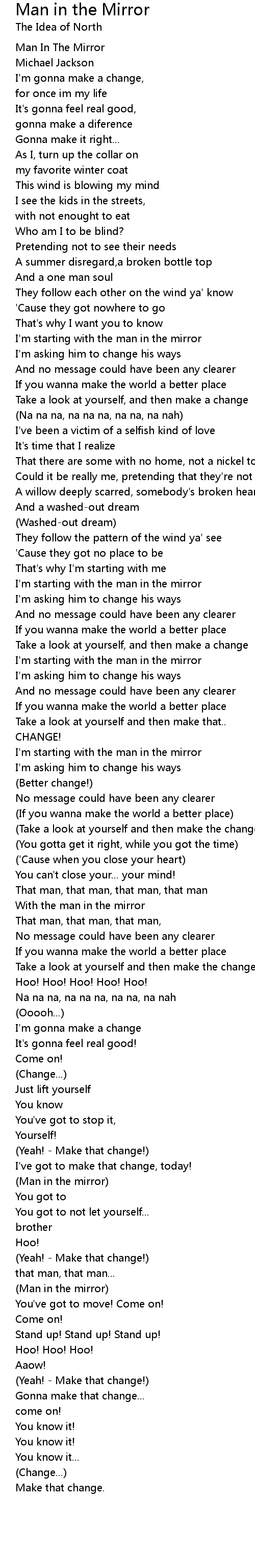 Your Full Man In The Mirror Lyrics images are be had in this site. Full Man In The Mirror Lyrics are a theme that is being searched for and appreciated by netizens these days. You can Get the Full Man In The Mirror Lyrics here. Save all royalty-free images.